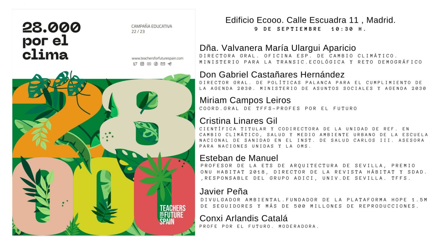 El viernes 9 de septiembre presentamos 28.000 por el clima en el Espacio ECOOO de Madrid.